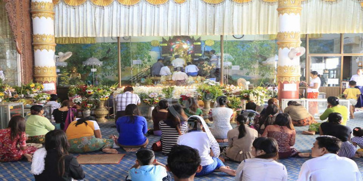 သီတင္းကၽြတ္လျပည့္ေန႔မွာ မႏၱေလးၿမိဳ႕ေအာင္ေတာ္မူဘုရားအတြင္း ေအာက္တိုဘာလ ၂၈ ရက္ေန႔ မနက္ပိုင္း ဆီမီးပူေဇာ္ ဘုရားဖူးလာသူေတြနဲ႔ စည္ကားေနပါတယ္။