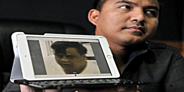 ၀ရမ္းေျပးဓာတ္ပုံကို ျပသေနသည့္ အင္ဒုိနီးရွား ရဲတပ္ဖြဲ႔၀င္တဦး။ (ဓာတ္ပုံ - ႐ုိက္တာ)