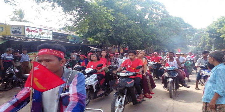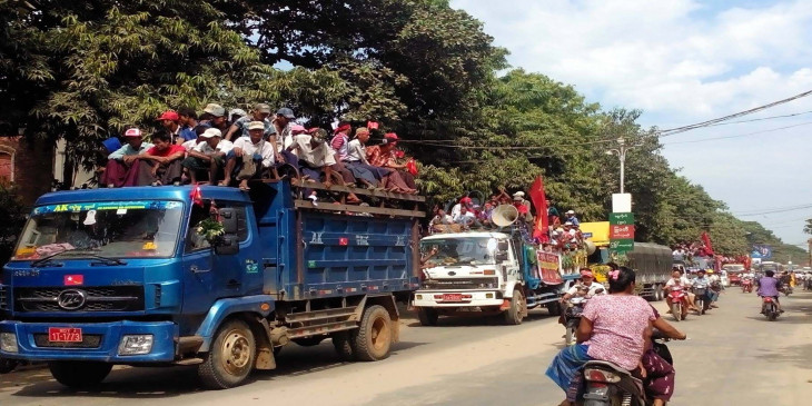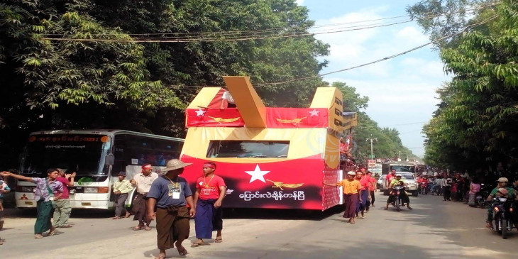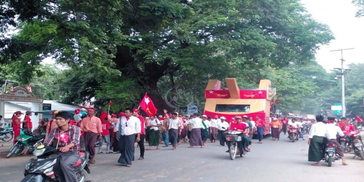 အန္အယ္လ္ဒီအဖဲြ႔၀င္ေတြ၊ ဝန္းရံျပည္သူေတြ အပါအ၀င္ အေႏွးယာဥ္လုပ္သားေတြက ေအာင္လံၿမိဳ႕ အန္အယ္လ္ဒီ႐ုံးမွ စတင္ၿပီး လမ္းမေတာ္လမ္းနဲ႔ ျပည္လမ္းမႀကီးအတိုင္း ေရြးေကာက္ပဲြေအာင္ႏိုင္ေရး အင္အားျပလွည့္လည္ စည္း႐ုံးခဲ့တာျဖစ္ပါတယ္။