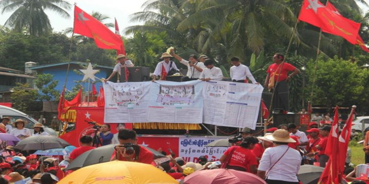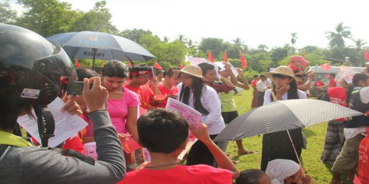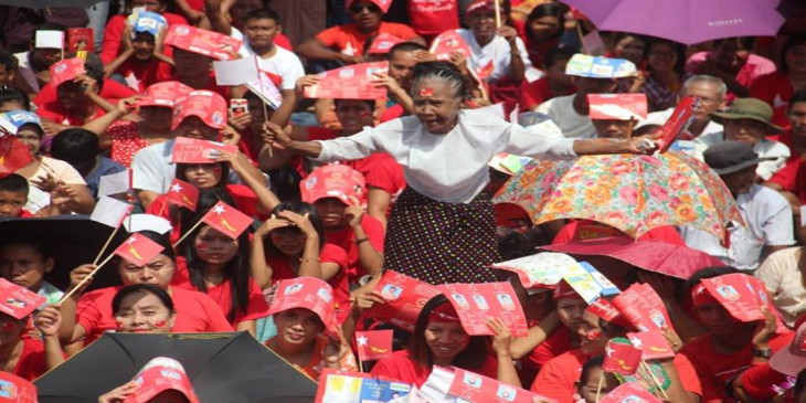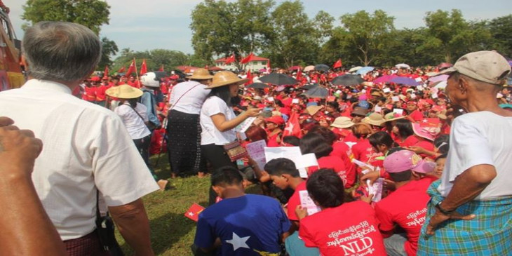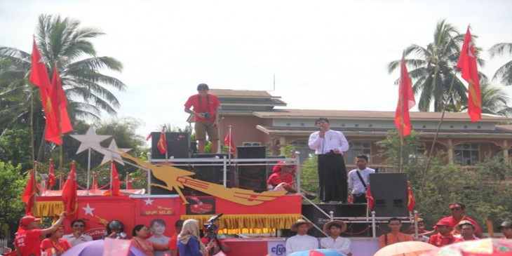 မြန္ျပည္နယ္၊ မုဒံုၿမိဳ႕ ေလ့က်င့္ေရးေဘာလံုးကြင္းမွာ ေအာက္တိုဘာ ၃၁ ရက္ေန႔က က်င္းပတဲ့ ေ႐ြးေကာက္ပြဲဆိုင္ရာ အသိပညာေပး ေဟာေျပာပြဲမွာ ၈၈ မ်ိဳးဆက္ ၿငိမ္းခ်မ္းေရးႏွင့္ ပြင့္လင္းလူ႔အဖြဲ႔အစည္း ေခါင္းေဆာင္ ဦးမင္းကိုနိုင္က အေၾကာက္တရားကင္း႐ွင္းစြာျဖင့္ အေျပာင္းအလဲအတြက္ မဲထည့္ၾကဖို႔ တိုက္တြန္းေျပာၾကားသြားပါတယ္။