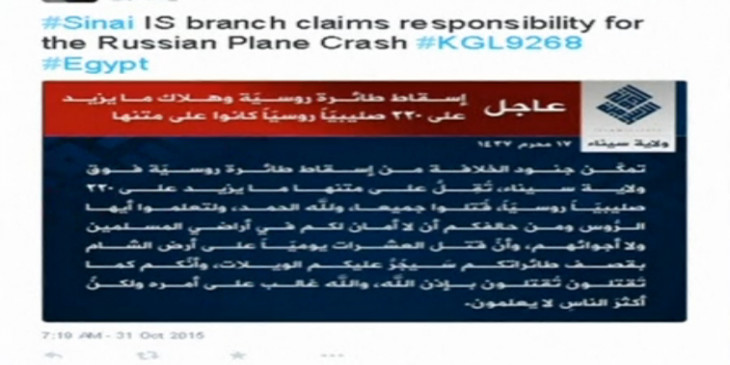 ဒါေပမယ့္ အုိင္အက္စ္အဖြဲ႔ရဲ႕ အီဂ်စ္အဖြဲ႔ခြဲက ေအာက္တုိဘာ ၃၁ ရက္ေန႔မွာပဲ တြစ္တာကေနတဆင့္ သူတို႔ လက္ခ်က္လို႔ ေၾကညာလုိက္ပါတယ္။