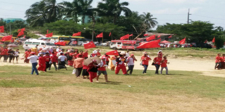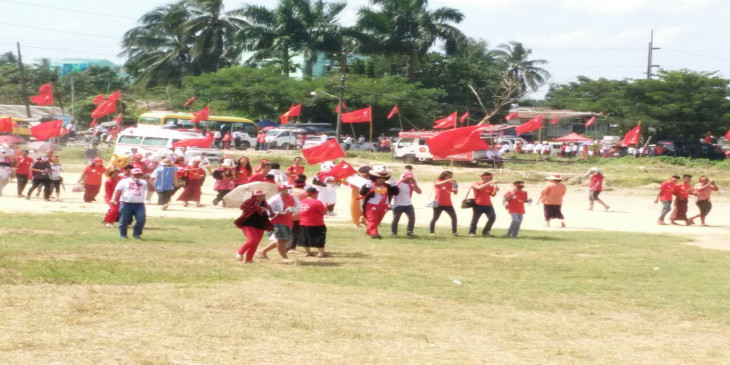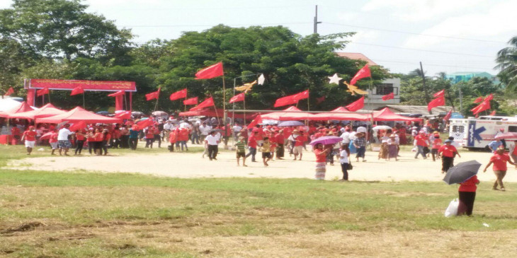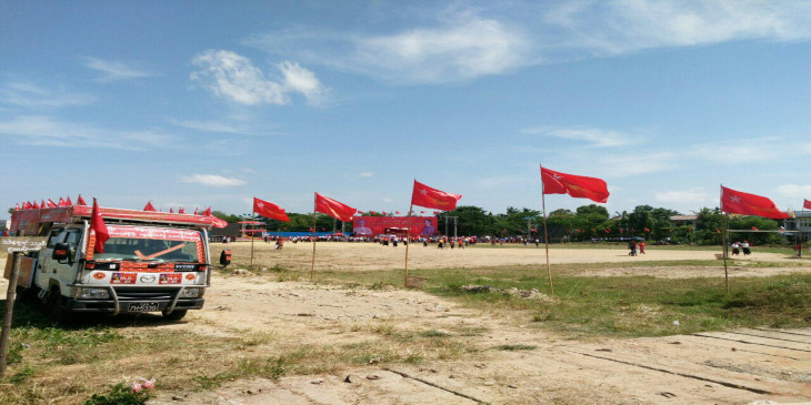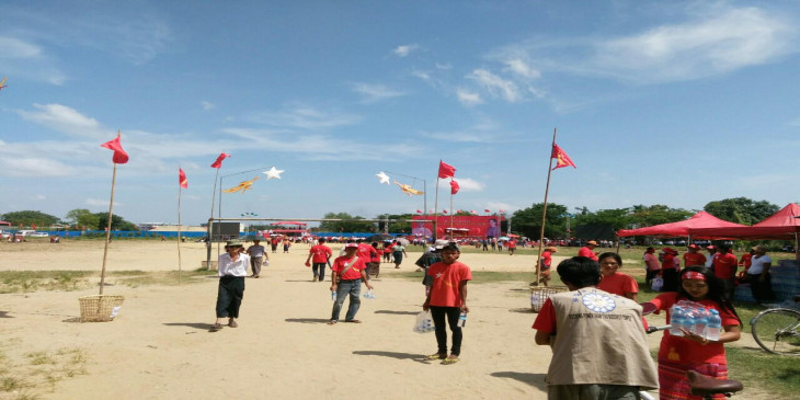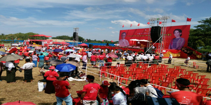 ေရြးေကာက္ပြဲ အႀကိဳ ေဒၚေအာင္ဆန္းစုုၾကည္ရဲ႕လူထုုေဟာေျပာပြဲကို ျပည္သူရင္ျပင္မွာ လုုပ္ဖိုု႔ စီစဥ္ခဲ့ေပမယ့္ တိုုင္းေဒသႀကီး အစိုုးရက ခြင့္မျပဳတာေၾကာင့္ ေနရာေျပာင္း က်ငး္ပတာ ျဖစ္ပါတယ္။