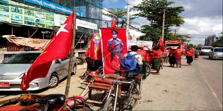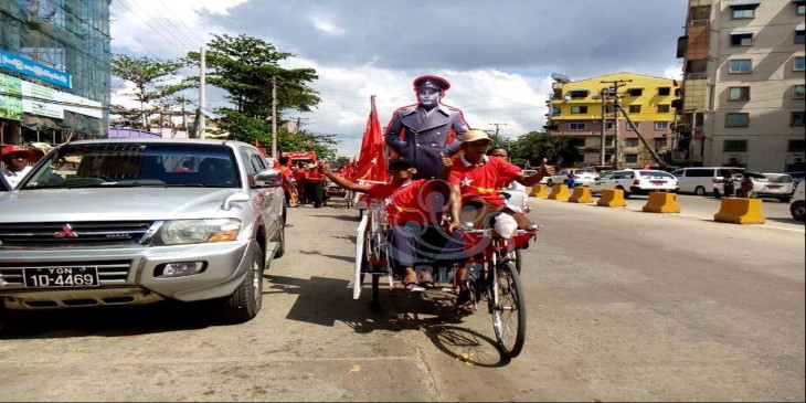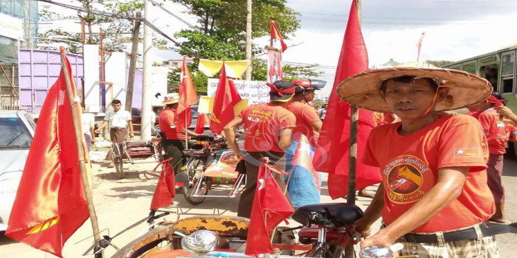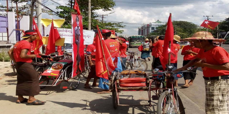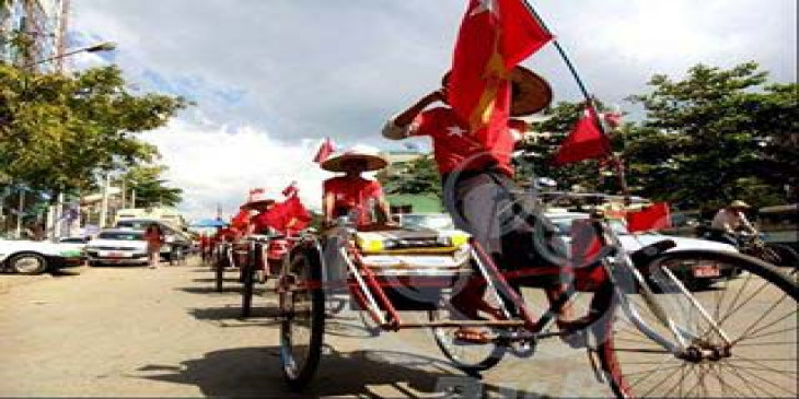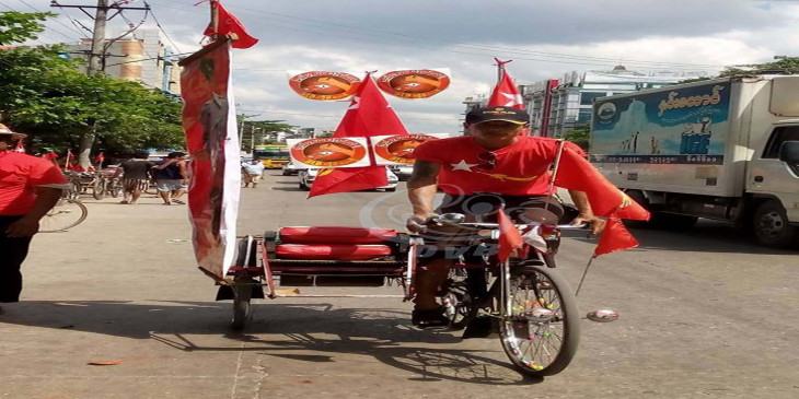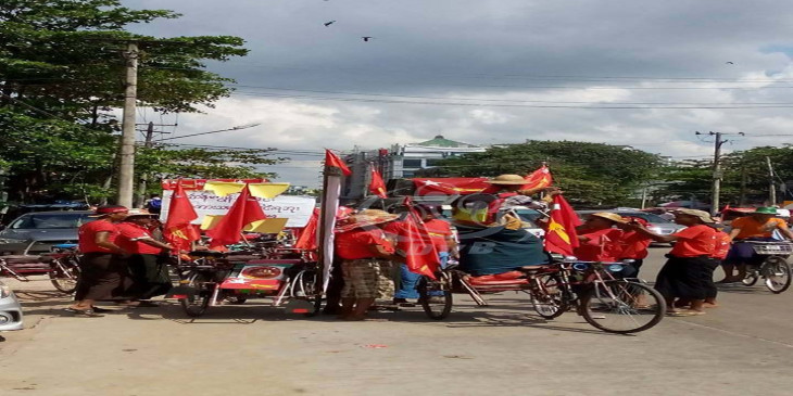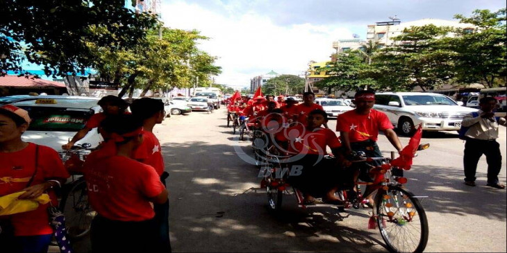သဃၤန္းကၽြန္း အန္အယ္လ္ဒီ ဆိုက္ကားမ်ားျဖင့္ လွည့္လည္မဲဆြယ္ (ဓာတ္ပံု)