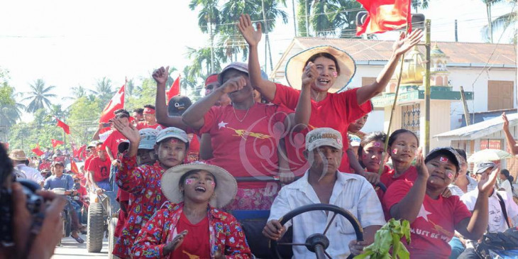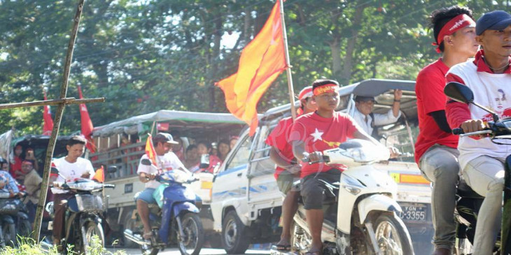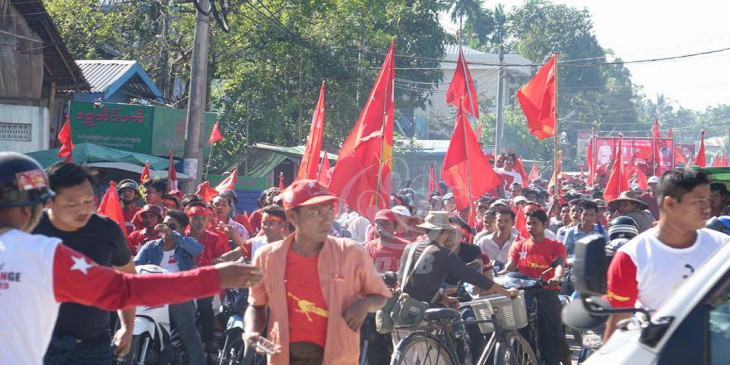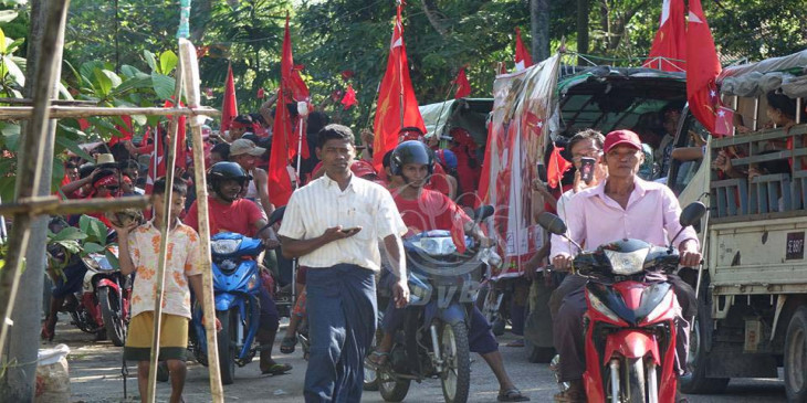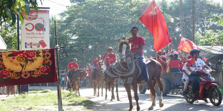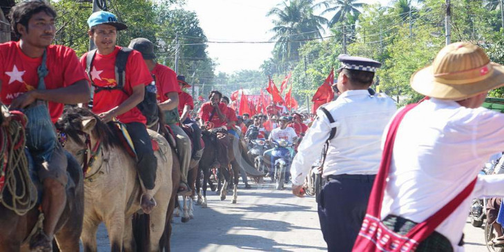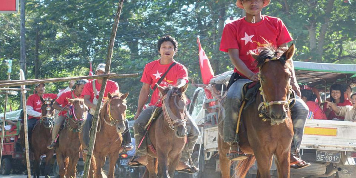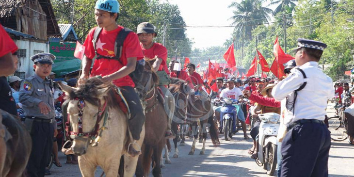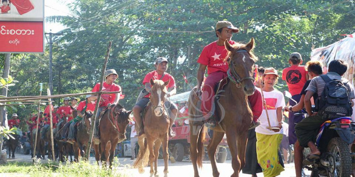 မအူပင္ၿမိဳ႕တြင္ အန္အယ္လ္ဒီေအာင္ႏိုင္ေရး ျမင္းမ်ားျဖင့္ လွည့္လည္စည္း႐ုံး (ဓာတ္ပံု)