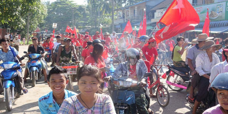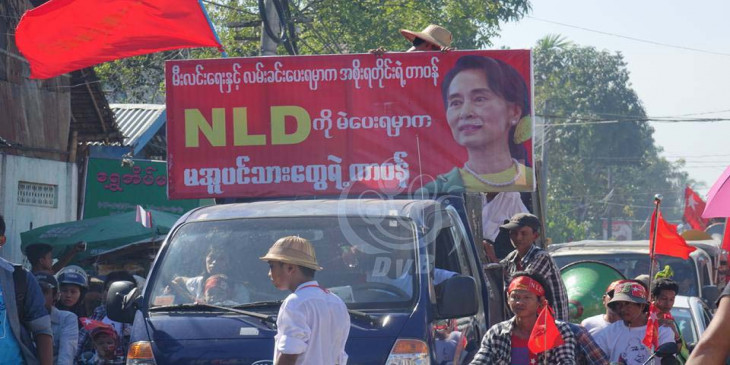 ႏို၀င္ဘာလ ၈ ရက္ေန႔မွာ က်င္းပမယ့္ ေရြးေကာက္ပဲြ ေအာင္ႏိုင္ေရးအတြက္ အမ်ဳိးသားဒီမိုကေရစီအဖဲြ႔ခ်ဳပ္ (အန္အယ္လ္ဒီ)ပါတီက ဧရာ၀တီတိုင္းေဒသႀကီး မအူပင္ၿမိဳ႕အတြင္း ျမင္းအေကာင္ ၂၀ ေက်ာ္နဲ႔ ယာဥ္မ်ိဳးစံုအပါအဝင္ လူအင္အား ၃၀၀၀ ေက်ာ္နဲ႔ လွည့္လည္စည္းရံုးခဲ့ၾကပါတယ္။