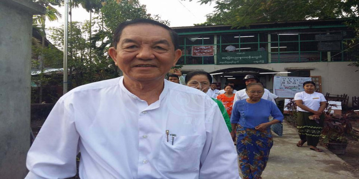 သမၼတ႐ုံး၀န္ႀကီး ဦးသိန္းညြန္႔ မအူပင္ၿမိဳ႕နယ္ မဲဆႏၵနယ္တြင္ ဒီေန႔မနက္ ၇ နာရီမွာ သြားေရာက္ မဲေပးခဲ့ပါတယ္။ ဓာတ္ပံု - ေအာင္သူ