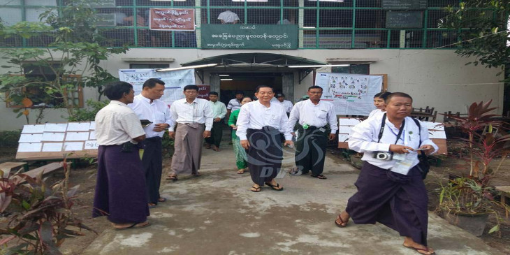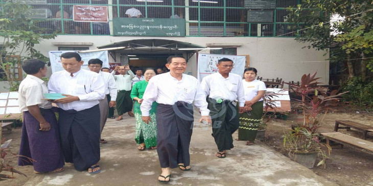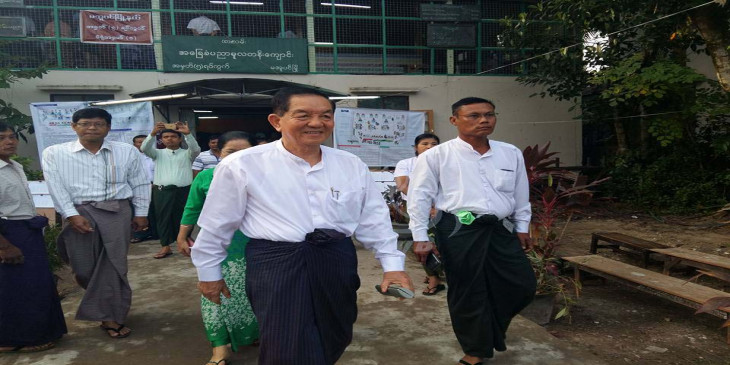 သမၼတ႐ုံး၀န္ႀကီး ဦးသိန္းညြန္႔ မအူပင္ၿမိဳ႕နယ္တြင္ မဲေပး (ဓာတ္ပံု)