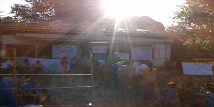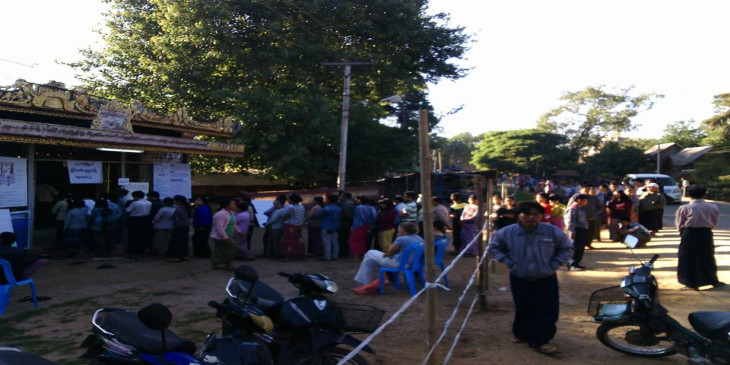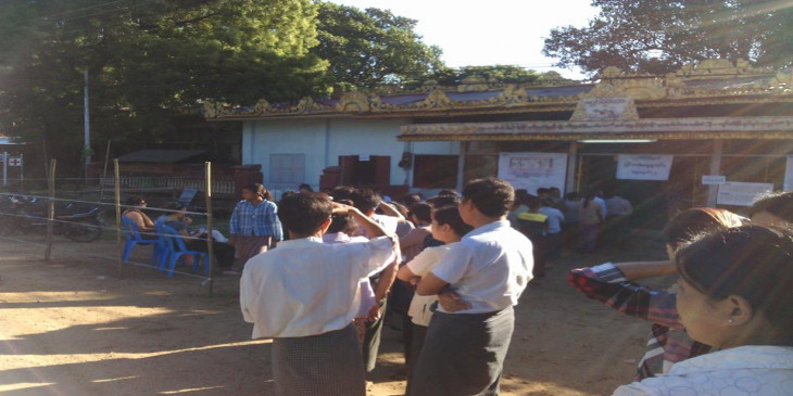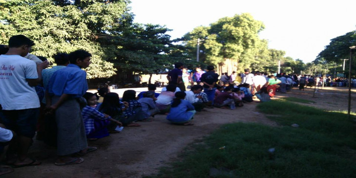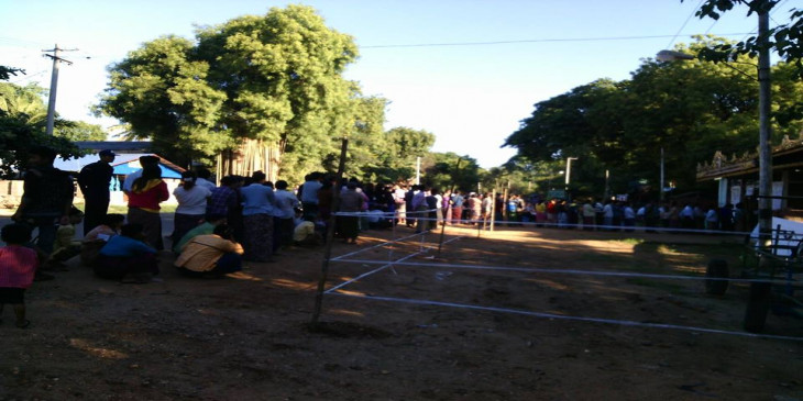 ေညာင္ဦးၿမိဳ႕နယ္ ျမင္းကပါေက်းရြာ ျပည္သူမ်ား မဲေပးရန္ တန္းစီေနစဥ္ (ဓာတ္ပုံ)