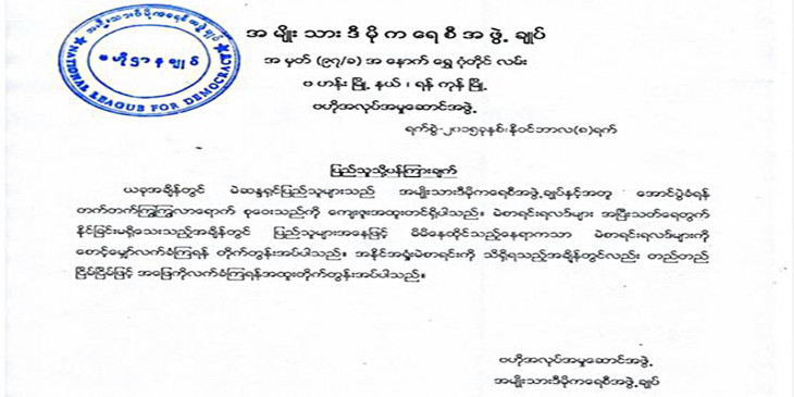 အႏိုင္အ႐ႈံးကို တည္တည္ၿငိမ္ၿငိမ္လက္ခံရန္ အန္အယ္လ္ဒီ တုိက္တြန္း