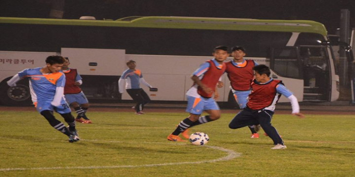 ျမန္မာ့လက္ေရြးစင္အသင္း ေတာင္ကိုရီးယားတြင္ ျပင္ဆင္ေလ့က်င့္ (ဓာတ္ပုံ)