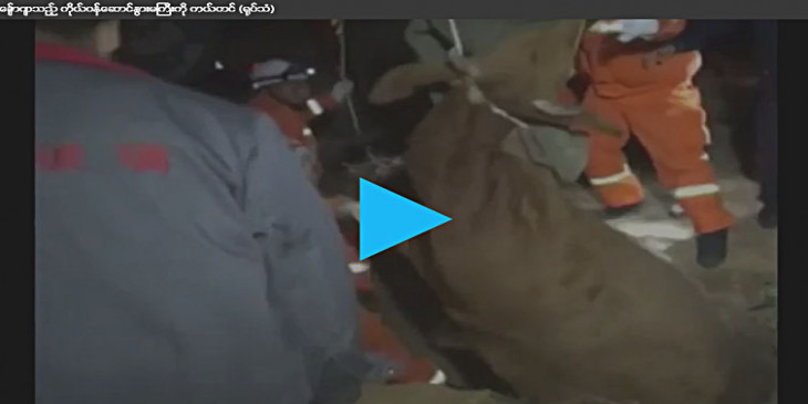 တ႐ုတ္ႏိုင္ငံ၊ ဂြမ္က်ိဳးခ႐ုိင္မွာ ကိုယ္၀န္ေဆာင္ ႏြားမႀကီးတေကာင္ဟာ ေရဆိုးေျမာင္းအတြင္း ေခ်ာ္က်ခဲ့တဲ့အတြက္ ကယ္ဆယ္ေရးသမားေတြဟာ ကရိန္းနဲ႔မတင္ၿပီး ကယ္ဆယ္ခဲ့ရပါတယ္။