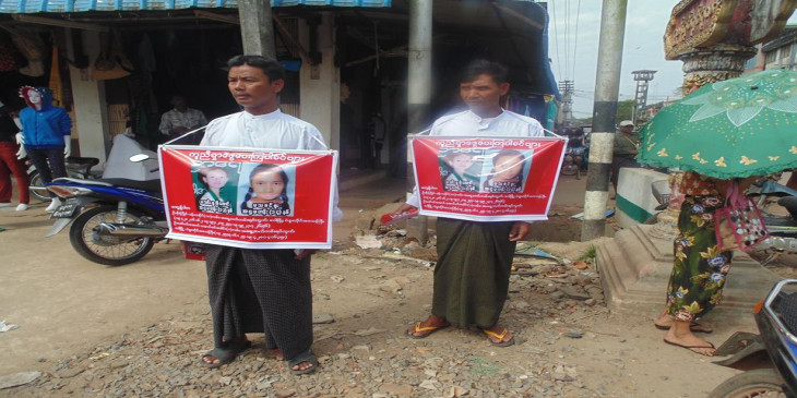 ပဲခူးတိုင္းေဒသႀကီး၊ ေ၀ါၿမိဳ႕နယ္၊ မန္းဘခိုင္ ၁၀ လမ္း အေရွ႕ဘက္ကမ္းရပ္ကြက္မွ အ႒မတန္းေက်ာင္းသူ ၂ ဦး ၿပီးခဲ့တဲ့ သံုးရက္ေလာက္က ေပ်ာက္ဆံုးေနမႈအေပၚ ဖခင္ျဖစ္သူေတြက ကူညီရွာေဖြေပးဖုိ႔ ဗြီႏုိင္းပုိစတာေတြ ကုိင္ေဆာင္ၿပီး ေတာင္းဆုိခဲ့ၾကပါတယ္။