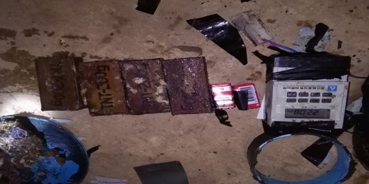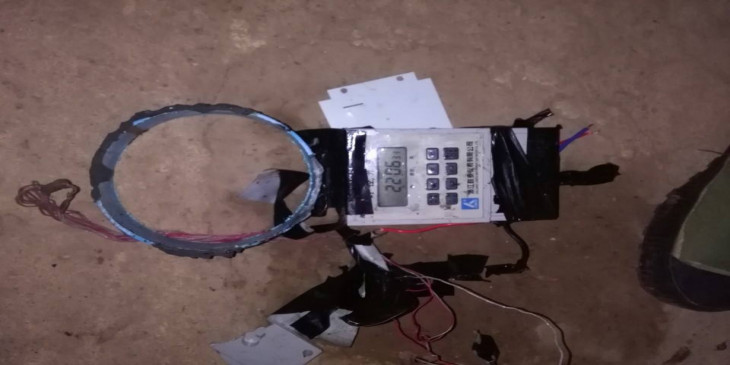 ဆီဆိုင္အေရာင္းတာဝန္ခံ ဦးခ်စ္ေထြးနိုင္က မသကၤာဖြယ္ ကတ္ထူပုံးတလုံး ေတြ႔ရွိေၾကာင္း သတင္းပို႔တာေၾကာင့္ ရဲတပ္ဖြဲ႔နဲ႔ BE တပ္ဖြဲ႔ေတြ သြားေရာက္စစ္ေဆးခဲ့ရာ High Class ကတ္ထူပံုးအတြင္း အျမင့္ ၅ လက္မရွိ PVC ၉ လက္မပိုက္အတြင္း TNT ၂၀၀ ဂရမ္၊ ယမ္းတံုး ၄ တံုးနဲ႔ သံတိုသံစေတြကုိ ည ၁၀ နာရီ ေပါက္ကြဲဖုိ႔ ခ်ိန္ကိုက္ထားတဲ့ Digtal ခ်ိန္ကိုက္နာရီ ၁ လံုး၊ ၉ ဗို႔ဓာတ္ခဲ ၂ လံုး၊ ၂ ေပခြဲေလာက္ ယမ္းႀကိဳးေခြ ၁ ေခြတို႔နဲ႔ ေပါက္ကြဲဖို႔ တပ္ဆင္ထားတာကုိ ေတြ႔ရွိခဲ့တယ္လုိ႔ ေက်ာက္မဲၿမိဳ႕မ ရဲစခန္းက မႈခင္းတာဝန္ခံ တပ္ၾကပ္ႀကီးစာေရး ဦးသန္းဝင္းက ေျပာပါတယ္။