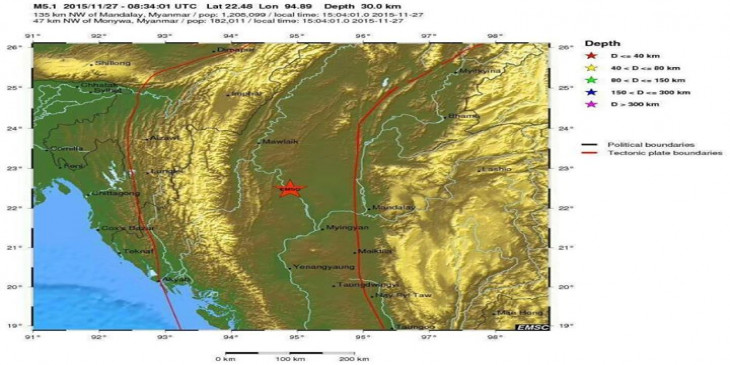 ျမန္မာစံေတာ္ခ်ိန္ ၁၅ နာရီ၊ ၀၄ မိနစ္၊ ၁၈ စကၠန္႔ အခ်ိန္ မႏၱေလး ေျမငလ်င္စခန္း အေနာက္ေျမာက္ဘက္မုိင္ ၉၀ ခန္႔အကြာ ျမန္မာနိုင္ငံ ျပည္တြင္း မံုရြာၿမိဳ႕ အေနာက္ေျမာက္ဘက္ ၃၅ မိုင္ခန္႔အကြာကို ဗဟိုျပဳ၍ အင္အား ရစ္ခ်္တာစေကး ၅.၄ အဆင့္ရွိ အင္အားအသင့္အတင့္ရိွေသာ ေျမငလ်င္တခု လႈပ္ရွားသြားတာလို႔ ဆိုပါတယ္။
