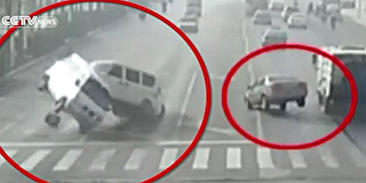 အဲဒီကားဟာ ေလထဲမွာ တပတ္လည္ၿပီး အနီးကကားကုိ ၀င္တိုက္မိခဲ့တာ ႐ုပ္သံဗီြဒီယိုဖိုင္မွာ ေတြ႔ရပါတယ္။