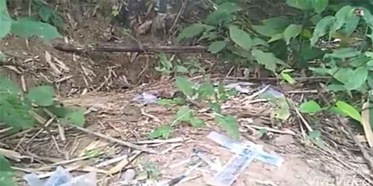 မူးယစ္ေဆးသုံးစြဲၿပီး စြန္႔ပစ္ထားသည့္ ဆလင္းပိုက္အမ်ားအျပား ေတြ႔ရစဥ္။