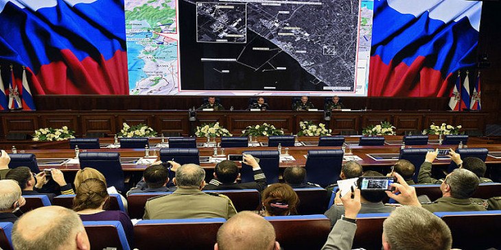 ႐ုရွားစစ္ဘက္အရာရွိမ်ား သတင္းစာရွင္းလင္းပြဲ က်င္းပေနစဥ္။ (ဓာတ္ပုံ - ေအအက္ဖ္ပီ)