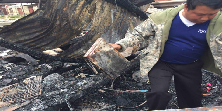 မီးေလာင္သြားတဲ့ ဆိုင္ခန္းေတြထဲမွာ စားေသာက္ကုန္ပစၥည္း ေရာင္းခ်တဲ့ဆိုင္နဲ႔ ဓာတ္ပံုဆိုင္တဆိုင္လည္း ပါသြားတယ္လို႔ ေဒသခံက ေျပာပါတယ္။