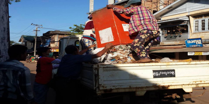 မြန္ျပည္နယ္ ေရးၿမိဳ႕နယ္တြင္ အန္အယ္လ္ဒီက အမႈိက္ေကာက္ (ဓာတ္ပုံ)
