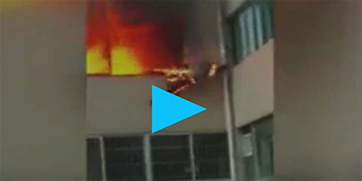 ခႏၶာကိုယ္ မီးစြဲေလာင္ၿပီး အေဆာက္အဦေပၚမွ ခုန္ခ်သည့္ မီးသတ္သမား (႐ုပ္သံ)