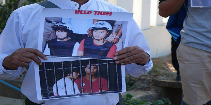 ထိုင္းသံရုံးေရွ႕လမ္း တဘက္မွာလည္း လိပ္ကၽြန္းအမႈ ေသဒဏ္ခ်မွတ္လိုက္တဲ့အေပၚ တရားမၽွတမႈမရွိတဲ့ စီရင္ခ်က္ျဖစ္တာေၾကာင့္ တရားမၽွတစြာ ျပန္လည္ဆံုျဖတ္ေပးဖုိ႔ လူတခ်ိဳ႕က ၿငိမ္းခ်မ္းစြာ ဆႏၵျပေတာင္းဆုိေနၾကပါတယ္။