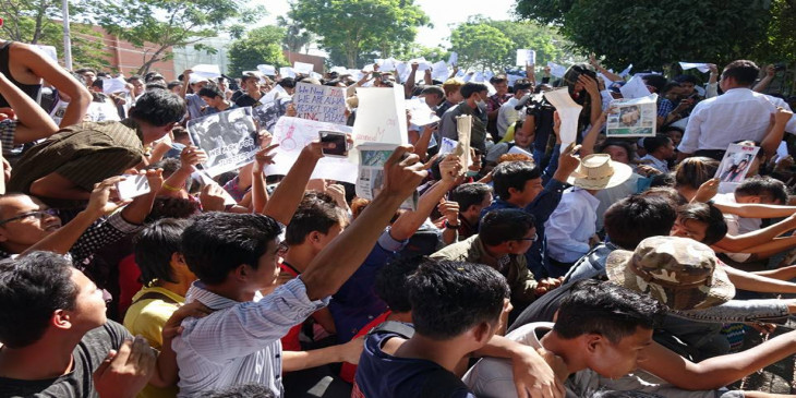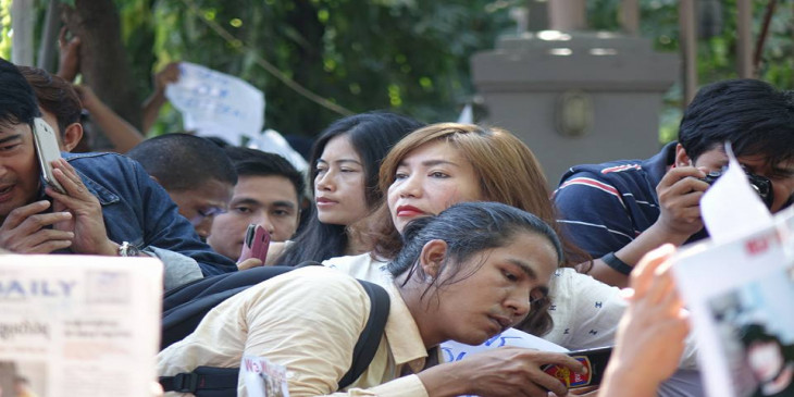 လိပ္ကၽြန္းလူသတ္မႈအတြက္ ေသဒဏ္ခ်လိုက္တဲ့ အေပၚ ျပန္လည္ ဆုံးျဖတ္ေပးဖို႔ ထုိင္းသံ႐ုံး အနီးက ျပည္လမ္းမေပၚမွာ ဆႏၵျပတဲ့ေနရာကို အႏုပညာရွင္ေတြလည္း ေရာက္လာပါတယ္။