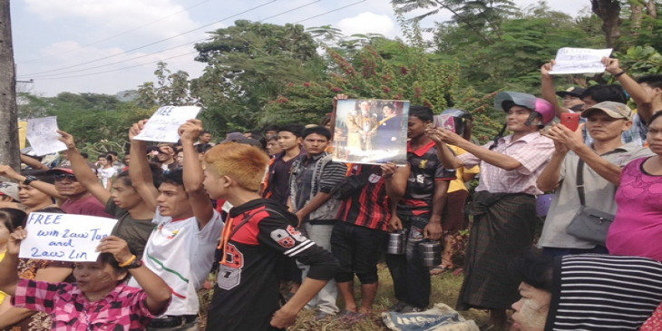 ဒီဇင္ဘာ ၂၆ ရက္ေန႔က ဘုရားသံုးဆူ အပါအ၀င္ တာခ်ီလိတ္နယ္စပ္ ဂိတ္ေတြမွာ ျမန္မာႏိုင္ငံသား ၂ ဦး လြတ္ေျမာက္ေရးအတြက္ ဆႏၵျပခဲ့ၾကသလို ရန္ကုန္မွာရွိတဲ့ ထုိင္းသံရုံေရွ႕မွာ ဆႏၵျပမႈေတြ ျပဳလုပ္ခဲ့ၾကပါတယ္။