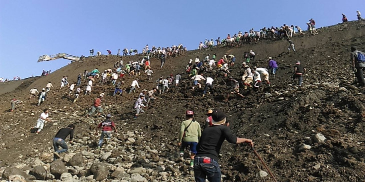 ဒီဇင္ဘာ ၂၅ ရက္ ညေနပိုင္း ေျမစာပံုၿပိဳက်ခဲ့မႈအတြင္း ေရမေဆးေက်ာက္သမား ၅၀ ေလာက္ ေပ်ာက္ဆုံးခဲ့ၿပီး ဒီေန႔ထိ အေလာင္းေတြ ရွာေဖြႏိုင္ျခင္းမရွိပါဘူး။ စြန္႔ပစ္ေျမစာပံုမွာ ကုမၸဏီေတြက ေျမစာစြန္႔ပစ္တာကိုလည္း လတ္တေလာ ရပ္ဆိုင္းထားတယ္လို႔ အဲ့ဒီေနရာေရာက္ေနတဲ့ ဒီဗီြဘီသတင္းေထာက္က ေျပာပါတယ္။