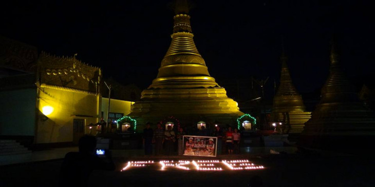 ထိုင္းႏိုင္ငံ လိပ္ကြၽန္းလူသတ္မႈမွာ ေသဒဏ္ေပးခံရတဲ့ ျမန္မာလူငယ္ ၂ ဦး အျမန္ဆံုး ျပန္လည္လြတ္ေျမာက္ေရးအတြက္ ေျမာင္းျမၿမိဳ႕က လူငယ္တခ်ိဳ႕ စုေပါင္းၿပီး ဆုေတာင္းပြဲတခုကို ေျမာင္းျမၿမိဳ႕ စၾကာနႏၵ စၾကာသီဟ ဘုရားမွာ ဒီဇင္ဘာ ၂၇ ရက္ေန႔ ညပိုင္းက က်င္းပျပဳလုပ္ခဲ့ၾကပါတယ္။