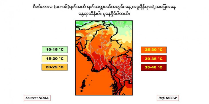 ဒါေၾကာင့္ လာမယ့္ေႏြရာသီဟာ အလြန္ပူျပင္းတဲ့ ေႏြရာသီ ျဖစ္လာႏိုင္လို႔ က်န္းမာေရးဆိုင္ရာ၊ စုိက္ပ်ိဳးေရးဆိုင္ရာ၊ စီးပြားေရးဆိုင္ရာေတြနဲ႔ ပတ္သက္ၿပီး သက္ဆိုင္ရာ ဌာနေတြက ႀကိဳတင္ျပင္ဆင္တာနဲ႔ အႀကံျပဳခ်က္ေတြ ထုတ္ျပန္တာ ျပဳလုပ္ဖို႔လည္း လိုအပ္တယ္လို႔ သူက အႀကံျပဳ ေျပာဆိုထားပါေသးတယ္။