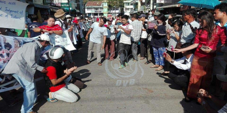 ထိုင္းႏိုင္ငံ လိပ္ကၽြန္းလူသတ္မႈနဲ႔ပတ္သက္ၿပီး ျမန္မာလူငယ္ ၂ ဦး ေသဒဏ္ေပးခံရတဲ့ အတြက္ မေက်နပ္တာေၾကာင့္ ထိုင္းနိုင္ငံတဖက္ကမ္း ျမန္မာနယ္စပ္ ေကာ့ေသာင္းၿမိဳ႕မွာ ဒီဇင္ဘာ ၂၉ ရက္ေန႔ မနက္ ၉ နာရီက ေဒသခံေတြနဲ႔ သံဃာေတာ္ေတြက ထိုင္းႏိုင္ငံ တရားစီရင္ေရးအေပၚ ကန္႔ကြက္ဆႏၵေဖာ္ထုတ္ခဲ့ၾကပါတယ္။