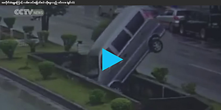 အတုိက္ခံရမႈေၾကာင့္ လမ္းလယ္ေျမာင္းထဲ ထုိးက်သည့္ ဗင္ကား (႐ုပ္သံ)