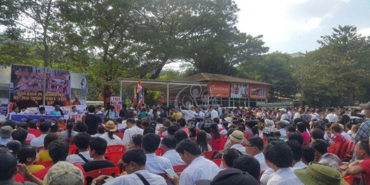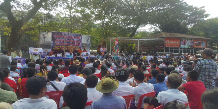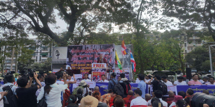 ရန္ကုန္ၿမဳိ႕ ဗုိလ္စိန္မွန္အားကစားကြင္းမွာ ထုိင္းႏုိင္ငံ လိပ္ကၽြန္းလူသတ္မႈနဲ႔ ပတ္သက္ၿပီး ေသဒဏ္ခ်မွတ္ခံရတဲ့ ျမန္မာႏုိင္ငံသား ၂ ဦးလြတ္ေျမာက္ေရး ဆႏၵထုတ္ေဖာ္ပြဲကို ဒီေန႔ မနက္ပိုင္းက က်င္းပေနပါတယ္။