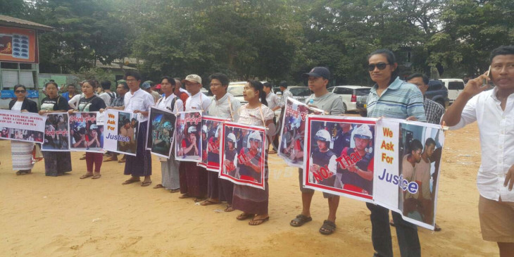 ျမန္မာလူငယ္ ၂ ဦးလြတ္ေျမာက္ေရး ရန္ကုန္ၿမိဳ႕ ဗိုလ္စိန္မွန္ကြင္းတြင္ ဆႏၵျပ (ဓာတ္ပံု)