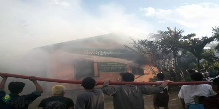 ဟသၤာတၿမိဳ႕နယ္ မူလတန္းလြန္ေကာ်င္းတြင္ မီးေလာင္ (ဓာတ္ပုံ)