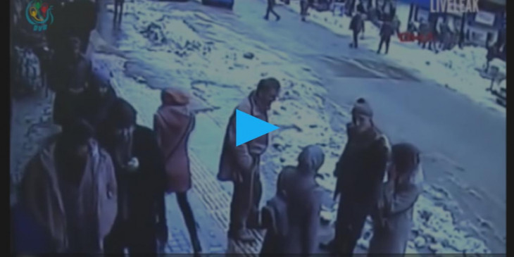 တူရကီႏိုင္ငံက လူသူရႈပ္ေထြးတဲ့လမ္းမေပၚရွိ ဆိုင္တဆိုင္ရဲ႕ ေခါင္မိုးေပၚကေန တန္ နဲ႔ခ်ီတဲ့ ႏွင္းခဲထုၿပိဳက်မႈေၾကာင့္ ေျခလ်င္လမ္းေလွ်ာက္လာသူ ၂ ဦး ထိခိုက္ဒဏ္ရာရရွိခဲ့ၾကၿပီး လမ္းသြားလမ္းလာေတြ ထြက္ေျပးခဲ့ၾကပါတယ္။