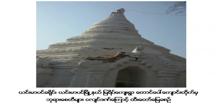 ငလ်င္ေၾကာင့္ ကနီၿမိဳ႕နယ္ရွိ ေစတီဘုရားမ်ားပ်က္စီး၊ စိန္ဖူးေတာ္ေျမခ