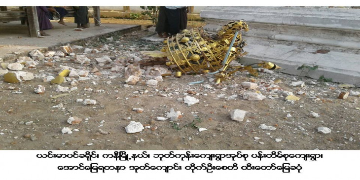 ငလ်င္ေၾကာင့္ ကနီၿမိဳ႕နယ္ရွိ ေစတီဘုရားမ်ားပ်က္စီး၊ စိန္ဖူးေတာ္ေျမခ