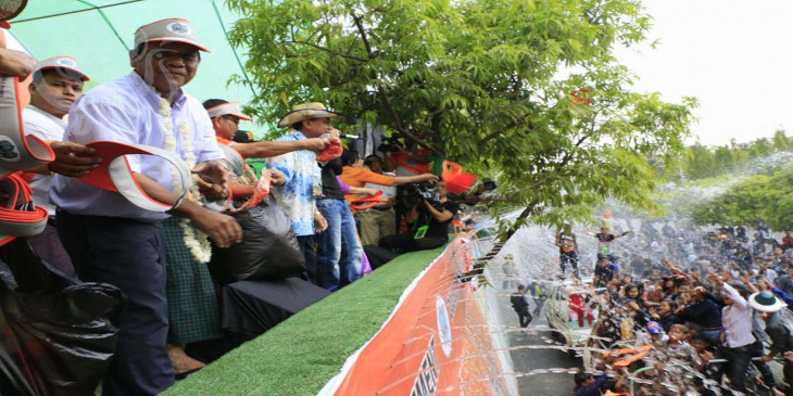 ဧၿပီလ ၁၅ ရက္ သႀကၤန္အၾကတ္ေန႔မွာ မႏၱေလးတိုင္းေဒသႀကီး ဝန္ႀကီးခ်ဳပ္ ေဒါက္တာ ေဇာ္ျမင့္ေမာင္ က ၿမိဳ႕ေပၚရွိေရပတ္ မ႑ပ္ေတြကို လွည့္လည္ ၾကည့္႐ႈအားေပးခဲ့ပါတယ္။ သ႐ုပ္ေဆာင္ ႏိုင္းႏိုင္း၊ နန္းစုရတီစိုး၊ ဝိုင္းေလးတို႔က ပရိတ္သတ္ကို ဧည့္ခံေဖ်ာ္ေျဖခဲ့ၾကပါတယ္။