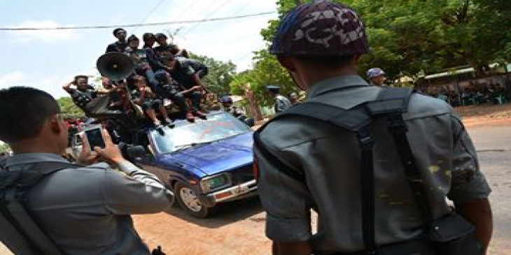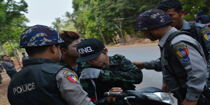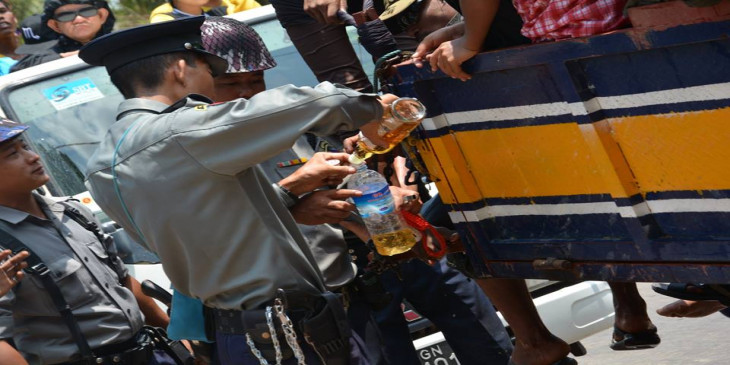 ေမာ္လၿမိဳင္သႀကၤန္ သၾကၤန္အတက္ေန႔ ဧၿပီ ၁၆ ရက္ေန႔ ေရပက္ခံထြက္သူေတြထံမွ မြန္ျပည္နယ္ရဲတပ္ဖြဲ႔က တုုတ္၊ ဓား လက္နက္မ်ိဳးစံုုနဲ႔ အလံမ်ဳိးစုံကိုု ရွာေဖြသိမ္းဆည္း သိမ္းဆည္းေနပါတယ္။