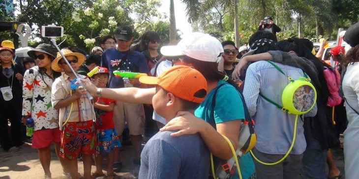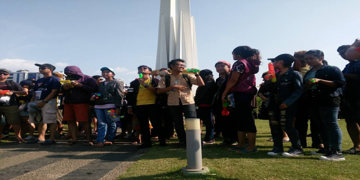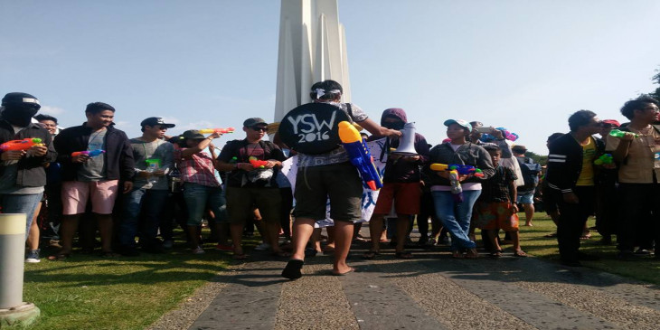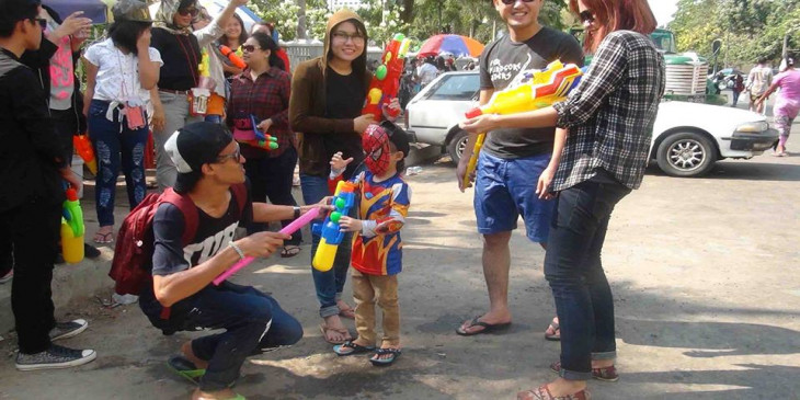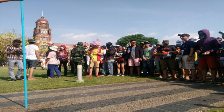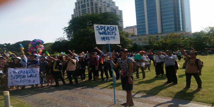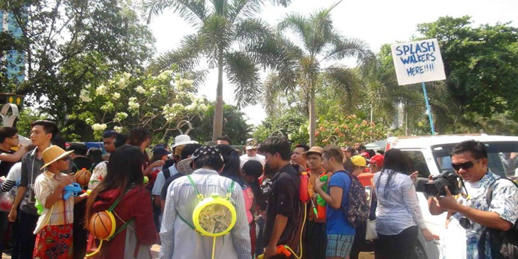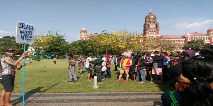 ေရကစားမယ့္သူေတြဟာ မဟာဗႏၶဳလပန္းၿခံနားမွာ စုေ၀းၾကၿပီး အနီးတစ္ေလွ်ာက္ကို လမ္းေလွ်ာက္ၿပီး ယူလာၾကတဲ့ ေရေသနတ္ စတာေတြနဲ႔ ေရပက္ကစားခဲ့ၾကပါတယ္။