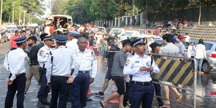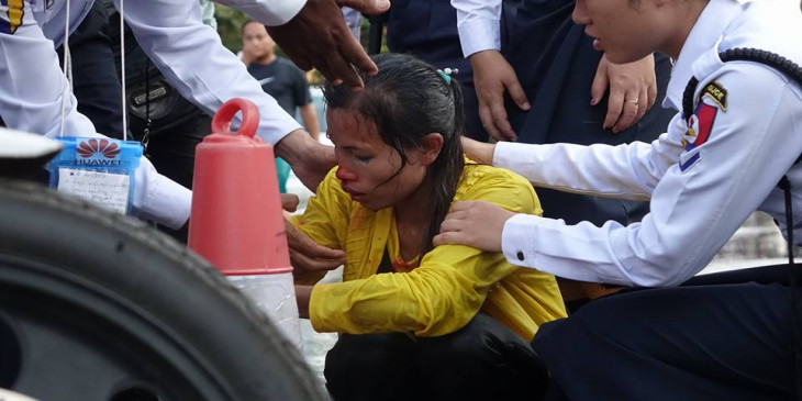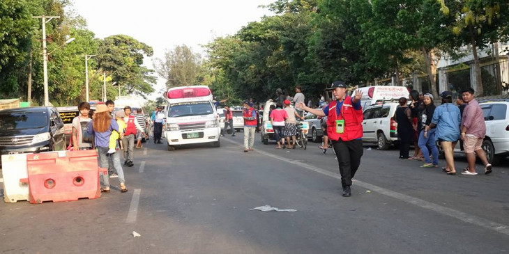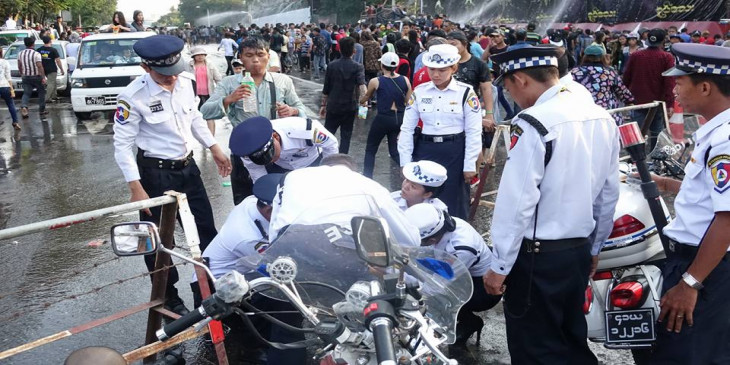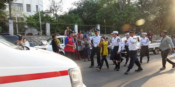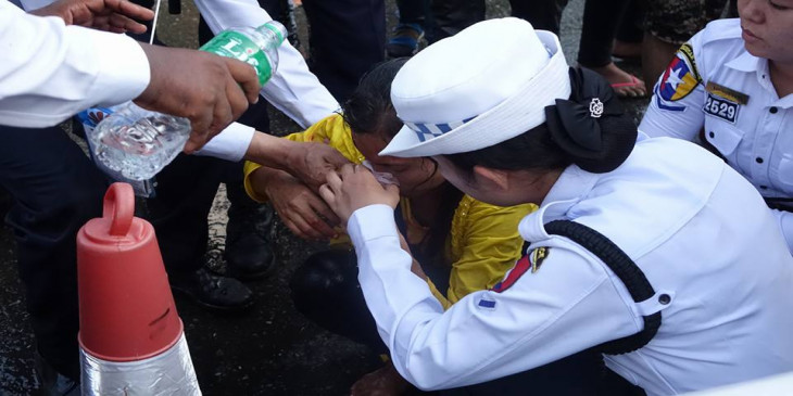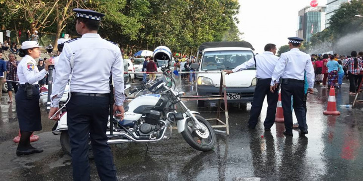 သႀကၤန္အတတ္ေန႔ အင္လ်ားျမင္ကြင္း၊ ေခ်ာ္လွဲေခါင္းေပါက္သူကို ယာဥ္ထိန္းရဲမ်ားကူညီ