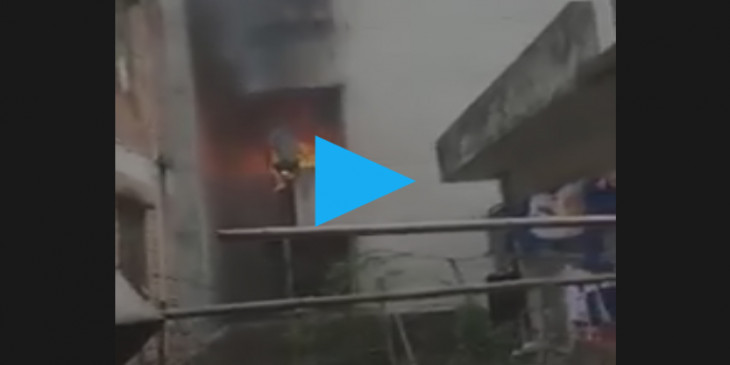 တ႐ုတ္ႏိုင္ငံ၊ ဂြမ္ေဒါင္းခ႐ုိင္၊ ဂြမ္က်ိဳးၿမိဳ႕မွာ အမ်ိဳးသားတဦးဟာ အေဆာက္အအံု တခုတြင္းမွာ မီးေတာက္ေတြၾကား ပိတ္မိေနခဲ့တဲ့ ႐ုပ္သံဗြီဒီယိုဖိုင္ကို လူတဦးက