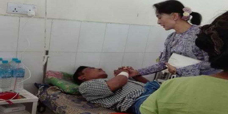 ဒီေန႔ မနက္ ၁၁ နာရီ ၃၀ မိနစ္က ႏိုင္ငံေတာ္အတိုင္ပင္ခံပုဂၢိဳလ္ ေဒၚေအာင္ဆန္းစုၾကည္ ဟာ ေနျပည္ေတာ္ ကုတင္ ၁၀၀၀ ေဆး႐ုံသို႔ သြားေရာက္ၾကည့္႐ႈခ့ဲပါတယ္။ (ဓာတ္ပံု -
