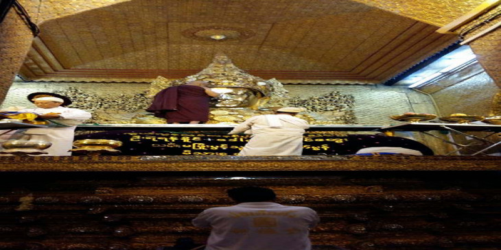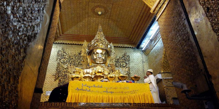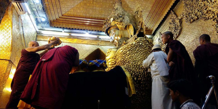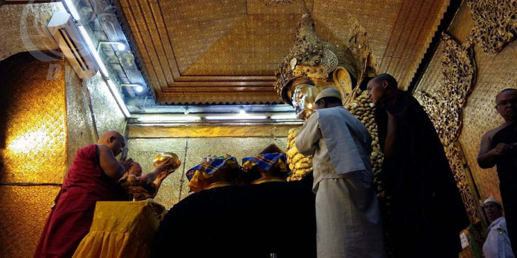 မႏၱေလးမဟာမုနိဘုရားႀကီး နံနက္အာ႐ုဏ္ မ်က္ႏွာသစ္ေတာ္ေရပူေဇာ္ (ဓာတ္ပံု)