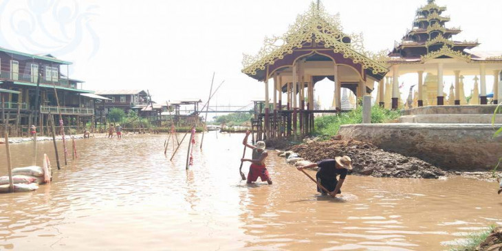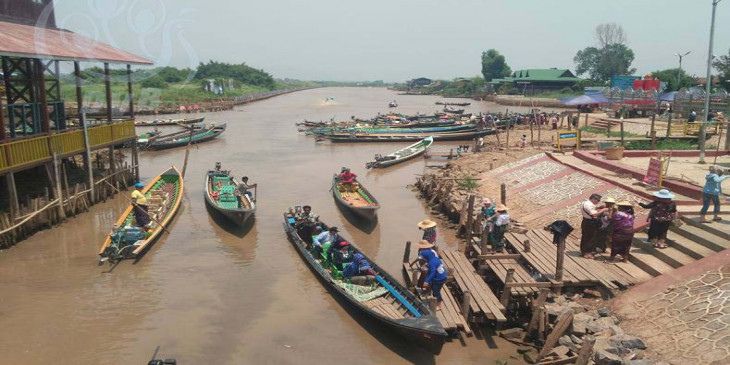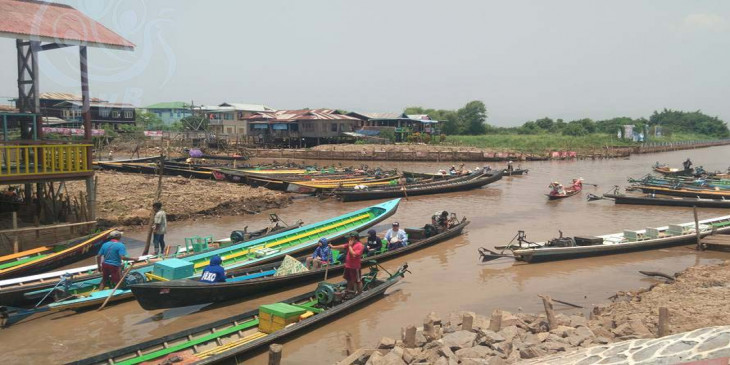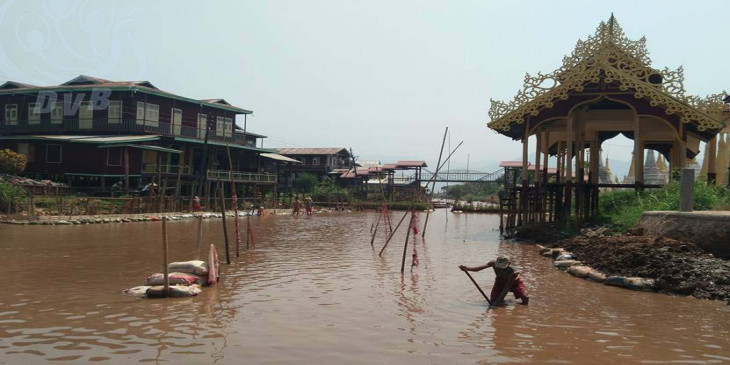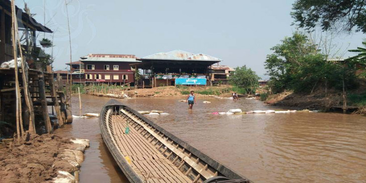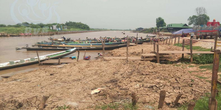 အင္းေလးကန္ ဟဲယားရြာမဘုန္းေတာ္ႀကီးေက်ာင္းအနီး အင္းတိန္ရြာမေခ်ာင္း ေရနည္းပါးလာတာကို ဧၿပီ ၂၀ ရက္ေန႔ကေတြ႔ရတာျဖစ္ပါတယ္။ ( ဓာတ္ပံု ထြန္းထြန္းသိန္း)