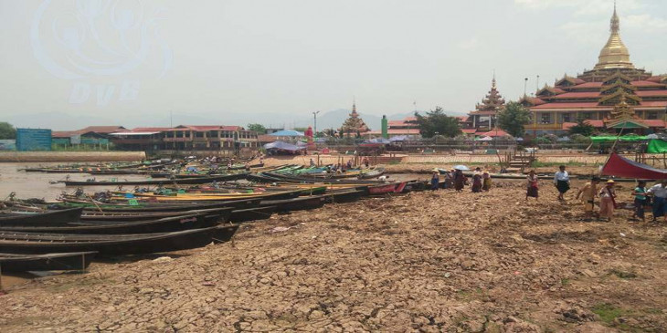 အင္းေလးကန္ ေရခန္းေျခာက္လာ (ဓာတ္ပံု) ဒီဗီြဘီ အင္းေလးကန္ ဟဲယားရြာမဘုန္းေတာ္ႀကီးေက်ာင္းအနီး အင္းတိန္ရြာမေခ်ာင္း ေရနည္းပါးလာတာကို ဧၿပီ ၂၀ ရက္ေန႔ကေတြ႔ရတာျဖစ္ပါတယ္။ ( ဓာတ္ပံု ထြန္းထြန္းသိန္း)