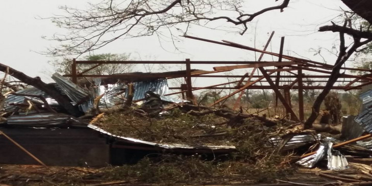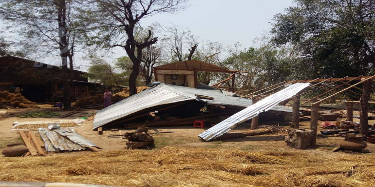 ခင္ဦးၿမိဳ႕နယ္၌ ေလျပင္းတိုက္မိုးသီးေႂကြက်၊ လူေနအိမ္ႏွင့္ စိုက္ခင္းမ်ား ပ်က္စီး
