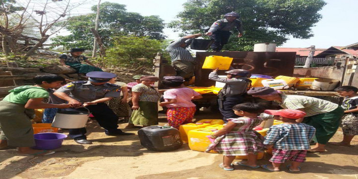ေသာက္သံုးေရျပတ္လပ္ေနတဲ့ ေက်းရြာေတြထဲက ေရာင္နက္ရြာကို ဂန္႔ေဂါခ႐ိုင္နဲ႔ ၿမိဳ႕နယ္ရဲတပ္ဖြဲ႔ ကေနၿပီး ဧၿပီ ၁၅ ရက္ေန႔က ေရသန္႔ဘူးႀကီး ၃၀၀ တႀကိမ္၊ လယ္ဓမၼရြာကို ၂၆ ရက္ေန႔က တႀကိမ္ ေရဂါလန္ ၂၄၀၀ ကို တႀကိမ္ လွဴဒါန္းခဲ့ၿပီး တဇန္းရြာကိုလည္း သြားေရာက္လွဴဒါန္းဖို႔ စီစဥ္ေနတယ္လို႔ ဒုရဲအုပ္ မ်ိဳးေဇာ္ျမင့္က ေျပာပါတယ္။