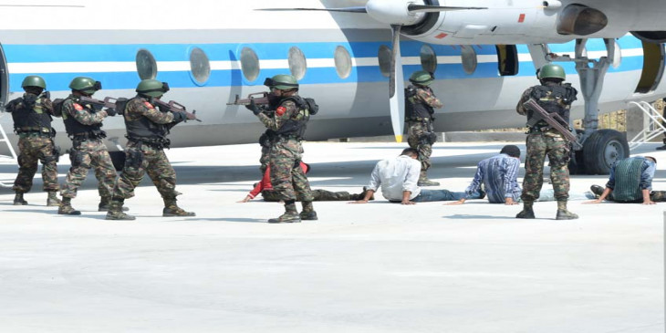 တပ္မေတာ္အထူးတပ္ဖြဲ႔၀င္မ်ားေလ့က်င့္ေရးအစီအစဥ္တခု ျပဳလုပ္ခဲ့ၿပီး ဒီထဲ အၾကမ္းဖက္ခံ ထားရတဲ့ ေလယာဥ္နဲ႔ ခရီးသည္တို႔ကို ကယ္တင္တဲ့ ေလ့က်င့္ခန္းလည္း ပါ၀င္တယ္လို႔ ကာကြယ္ေရးဦးစီးခ်ဳပ္ရဲ႕ အင္တာနက္စာမ်က္ႏွာမွာ ေဖာ္ျပပါတယ္။